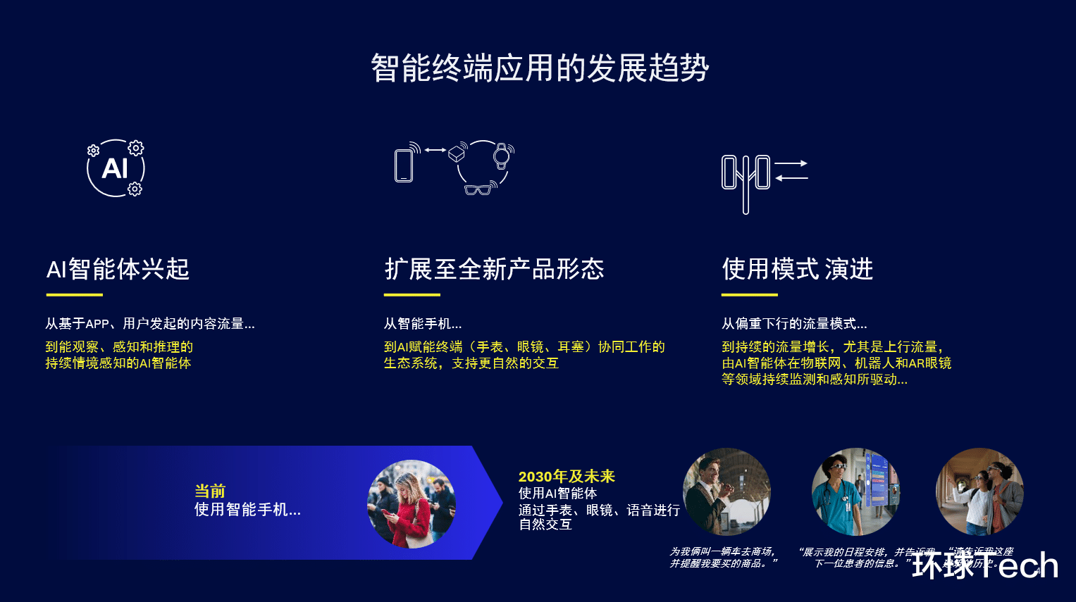 这种变化不仅影响用户行为,也正在重塑终端生态。近年来,高通推动的终端布局已经从手机扩大到 AI PC、XR、可穿戴设备、智能网联汽车等多个领域,每一种终端都将成为数据生成与处理的重要节点。“智能体 AI 在不同终端运行将产生大量数据,终端侧数据需要传给云端,这将进一步推动对于网络和流量的需求,重塑业务形态与流量模型。”徐晧强调。